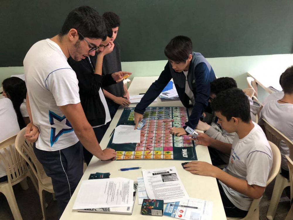 No processo do desenvolvimento do conhecimento, o jogo é uma das formas mais prazerosas de aprendizagem, por meio de atividades lúdicas que envolvem os alunos nas brincadeiras, estimulando a capacidade de comunicação e fortalecendo as relações interpessoais. Nesse contexto, no dia 02 de maio, os alunos do 1º ano - Ensino Médio, participaram de momentos agradáveis no Laboratório de Jogos, sob a orientação das professoras Elizabeth Gonçalves e Renata Cristina, utilizando o Jogo de cartas “Chemical Heroes” - A origem dos heróis químicos. O objetivo da atividade é trabalhar os elementos da tabela periódica de forma divertida, tornando as aulas de química mais significativas e prazerosas para os alunos.