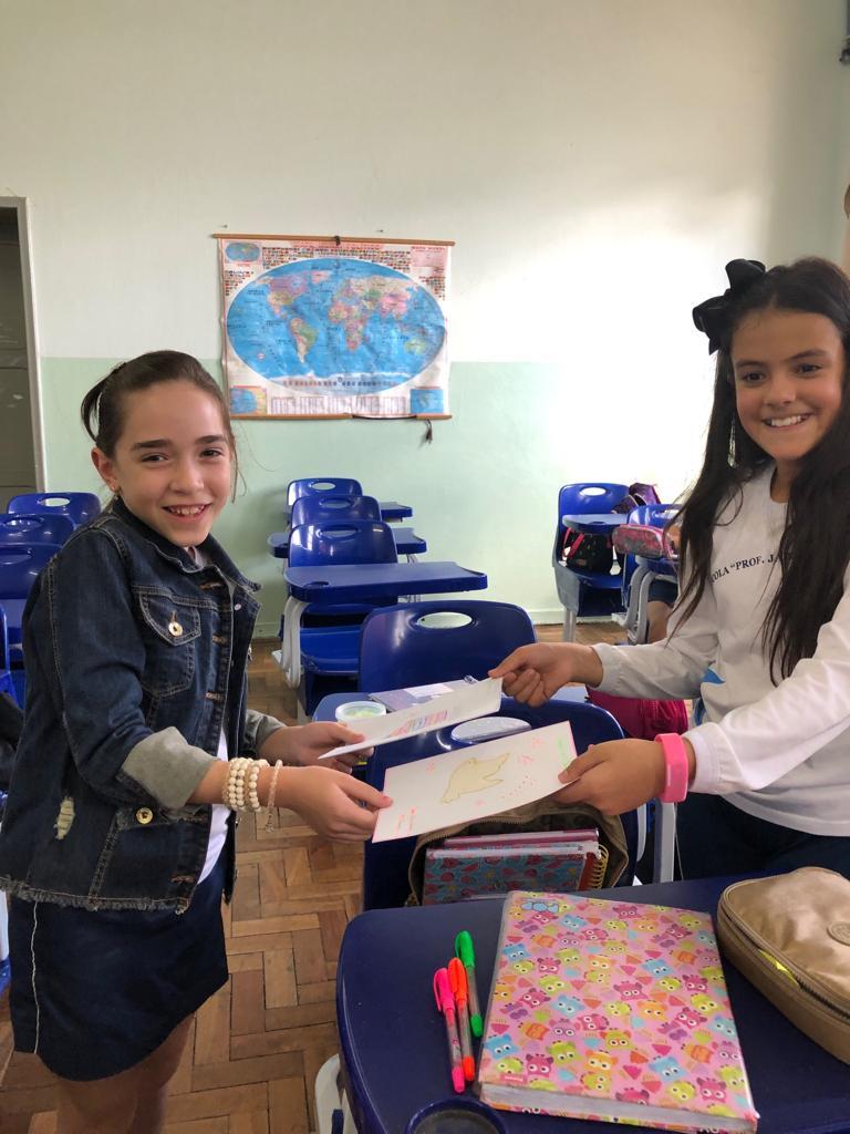 No dia 20 de junho, alunos do 1º ao 4º ano do Fundamental (anos iniciais), acompanhados pela professora Adriana Cimini, participaram de momentos agradáveis de demonstração de carinho, cantando e trocando cards com os colegas nas aulas de inglês. Reforçando a importância da amizade e do respeito em prol de uma convivência em grupo mais respeitosa e saudável. A atividade faz parte do Projeto “Respeito: peça mais importante da convivência”, desenvolvido com as turmas do Minimaternal ao 5º ano do Ensino Fundamental, com o objetivo de contribuir com a formação integral dos alunos, cultivando valores e estimulando o autoconhecimento.
