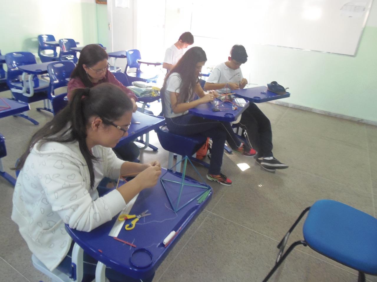 Para que os alunos, melhor compreendam o conteúdo “Geometria Molecular”, os professores, Renata Cristina Campos Pereira e Paulo Roberto Vitorino Filho, trabalharam de forma criativa e prática, usando canudos costurados para demonstrar a geometria das moléculas. Incentivando o aprendizado sem, no entanto, abrir mão das conceituações inerentes ao assunto.