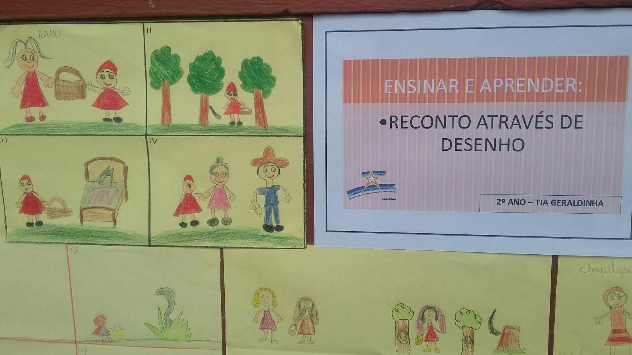 Após a leitura do Conto “Chapeuzinho Vermelho” a professora Geralda Maria Gomes Rodrigues, trabalhou a capacidade de interação dos alunos com a leitura, com o reconto através de desenho. Representando a mesma história sobre o seu próprio entendimento.
