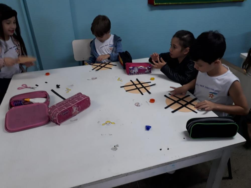 Dando sequência às atividades do projeto "A alegria de brincar”, no dia 12 de junho, os alunos do 2º ano - Fundamental (anos iniciais) trabalharam a construção de um “Jogo da Velha”, sob a supervisão da professora Adriana Generosa, na aula de artes. A atividade tem por objetivo, estimular o desenvolvimento de habilidades manuais e a criatividade, ao construir o próprio jogo. Além de proporcionar momentos agradáveis de interação entre todos.