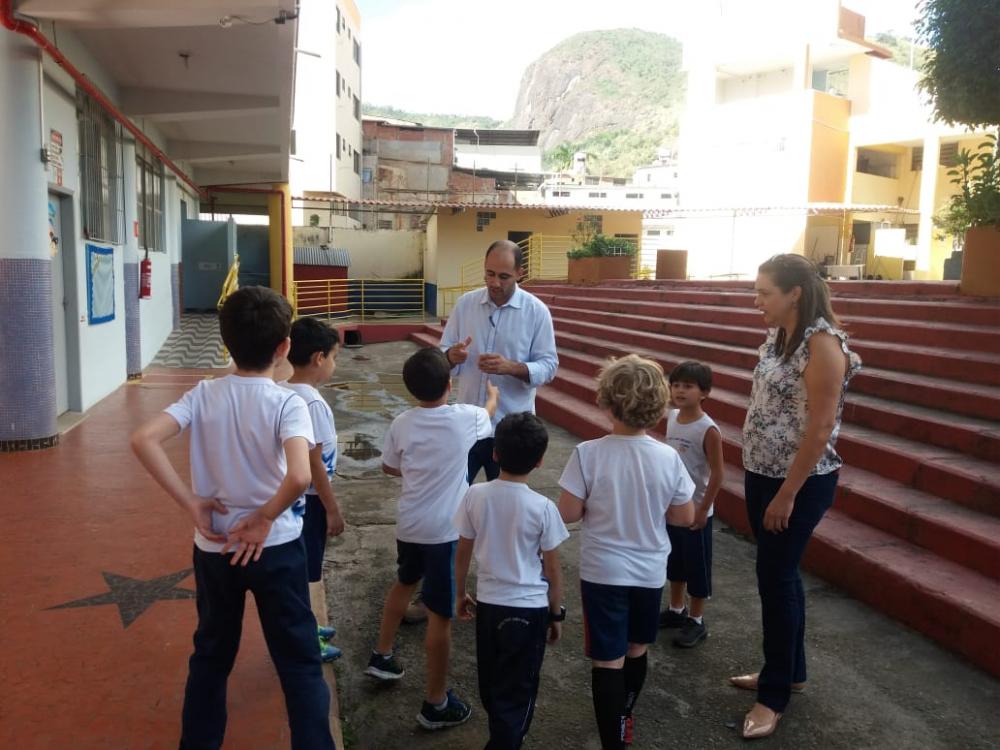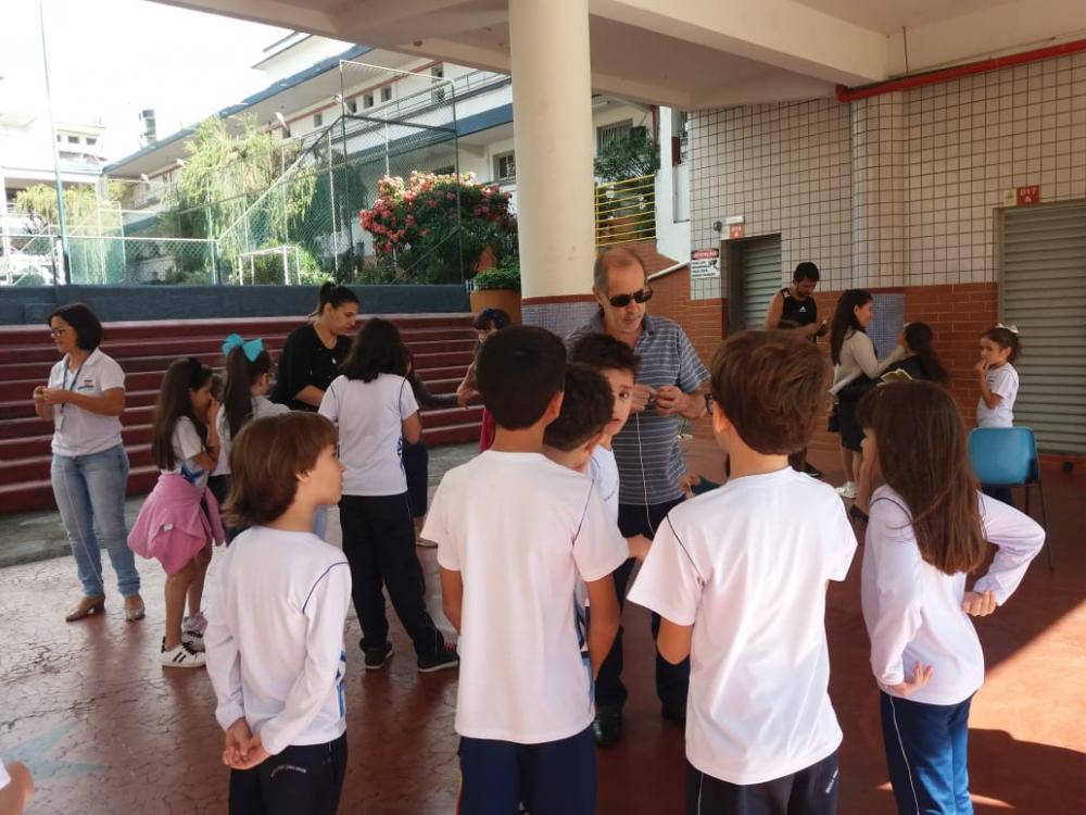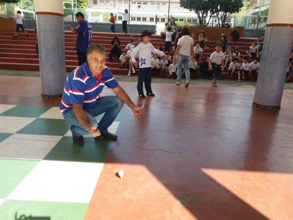 No dia 05 de junho, aconteceu mais um encontro do projeto "A alegria de brincar”. Nesse dia, os alunos do 2º ano - Fundamental (anos iniciais), acompanhados pelas professoras Andrea e Olinda, receberam os familiares das crianças, para se divertirem na brincadeira de “RODAR PIÃO”. O pião é um objeto cônico, geralmente de madeira, com uma ponta de metal, que é lançado com ajuda de um fio conhecido por "fieira", que o faz girar. Compartilhar as brincadeiras de infância, está proporcionando, às nossas crianças, um aprendizado significativo, através da interação de pais e filhos.
