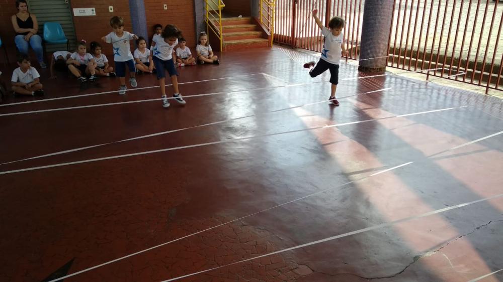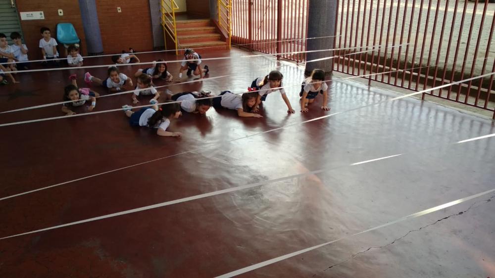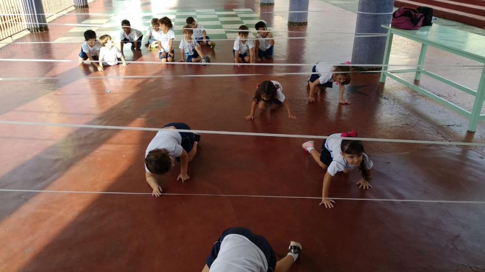 As aulas de Educação Física tornam-se momentos ricos de aprendizado por meios de atividades lúdicas conduzidas pela professora Fernanda Schittini, com objetivo de proporcionar às crianças experiências corporais de diferentes formas. Assim, nesta terça-feira dia 02 de abril, os alunos do 2º período da Educação Infantil se divertiram, participando de uma atividade com “elástico”, desenvolvendo a agilidade, condicionamento físico, coordenação motora e a concentração.