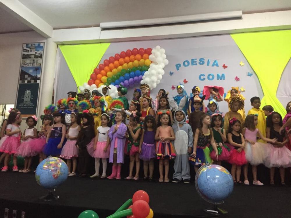 Buscando o desenvolvimento da linguagem oral, a memorização, a espontaneidade, além do desafio de se apresentar em público. Aconteceu, no último dia 27 de abril, a culminância do Projeto "Poesia com Alegria", desenvolvido pelas professoras Alessandra, Anne e Márcia, com os alunos do 2º período da Educação Infantil. Tendo por objetivo, promover, através das poesias, momentos lúdicos de interação entre os alunos para se expressar oralmente, ampliando seu vocabulário, expressar desejos, sentimentos, descobrindo que também podem brincar com as palavras.