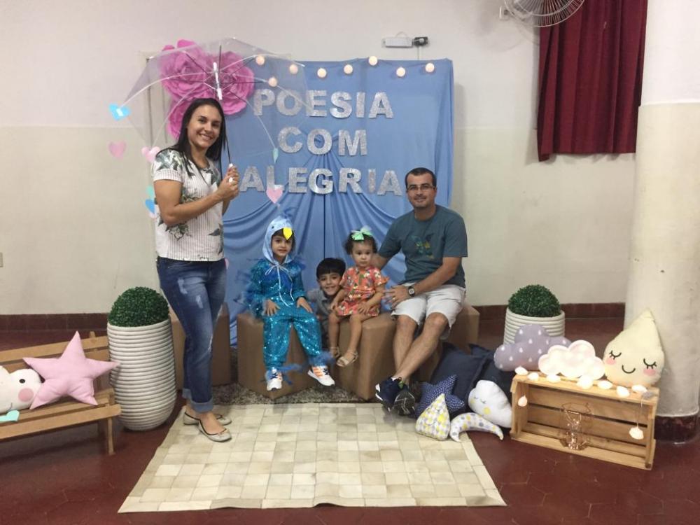 Buscando o desenvolvimento da linguagem oral, a memorização, a espontaneidade, além do desafio de se apresentar em público. Aconteceu, no último dia 27 de abril, a culminância do Projeto "Poesia com Alegria", desenvolvido pelas professoras Alessandra, Anne e Márcia, com os alunos do 2º período da Educação Infantil. Tendo por objetivo, promover, através das poesias, momentos lúdicos de interação entre os alunos para se expressar oralmente, ampliando seu vocabulário, expressar desejos, sentimentos, descobrindo que também podem brincar com as palavras.