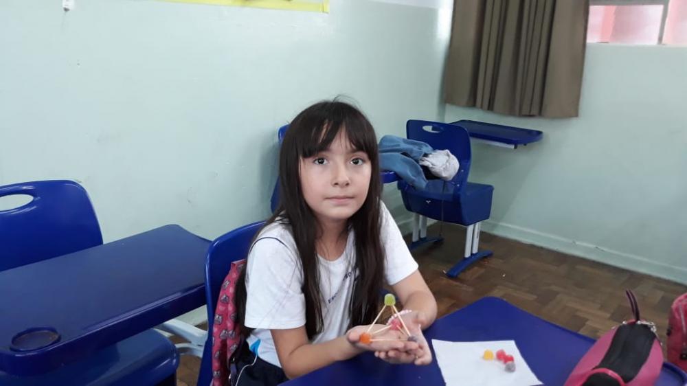 Seguindo o conteúdo proposto pelo livro de Matemática (Anglo), os alunos do 3º ano do Ensino Fundamental (anos iniciais) iniciaram os estudos sobre Poliedros, trabalhando seus elementos: faces, arestas e vértices. E, neste contexto, orientados pela professora Suelaine, no dia 14 de maio, participaram da construção de poliedros, com a utilização de jujubas (balas de goma) e palitos de dente. A atividade teve por objetivo, proporcionar momentos de interação e descontração entre os alunos, fazendo-os compreender, sentir e ver a geometria, a partir de experiências práticas.