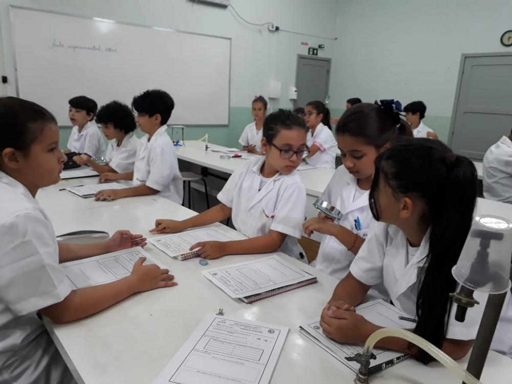 Seguindo o conteúdo proposto pelo livro de ciências (Anglo), os alunos do 5º ano iniciaram os estudos sobre o corpo humano, trabalhando com a análise das funções da pele. E, para estimular a curiosidade dos alunos e trabalhar a observação em laboratório, utilizaram lupas para analisarem a própria pele e também dos colegas, objetivando entender a importância da pele como revestimento do organismo.