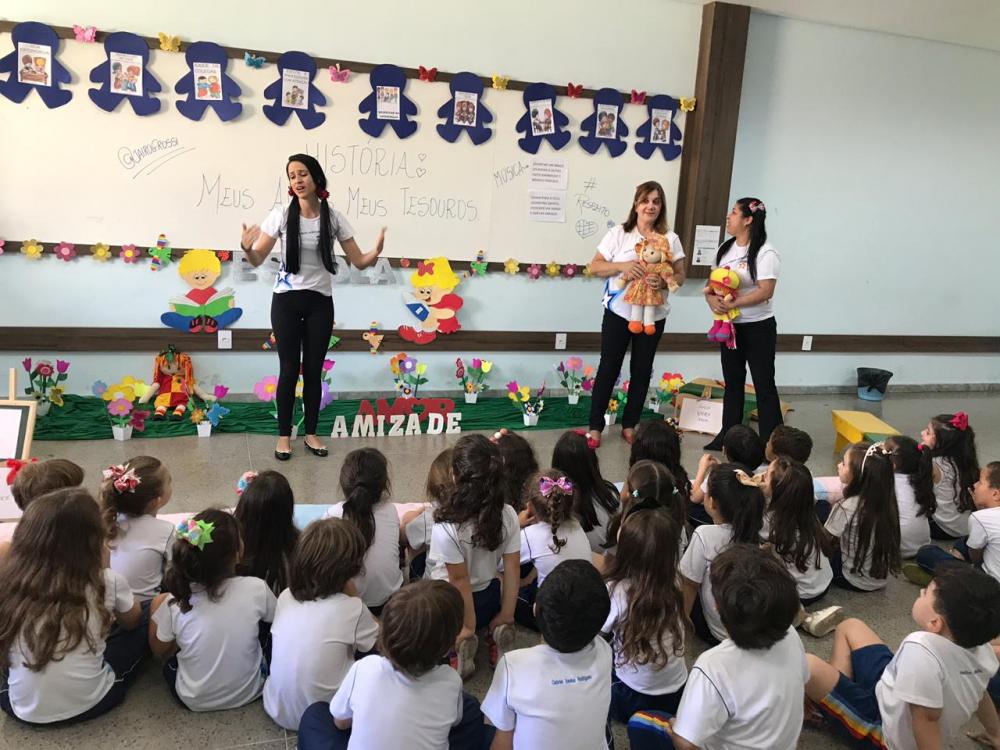 Na tarde do dia 31 de maio, alunos da Educação Infantil da Escola “Professor Jairo Grossi” participaram da abertura do Projeto “Respeito: Peça mais importante da convivência”, assistindo a uma peça teatral: “Meus Amigos, Meus Tesouros”, fazendo uma reflexão sobre a importância de conviver bem com os colegas no espaço escolar. A atividade tem por objetivo envolver os alunos nas atividades do projeto, objetivando construir vínculos respeitosos no ambiente escolar e colocar em prática atitudes de respeito, amizade, companheirismo através da convivência harmoniosa.