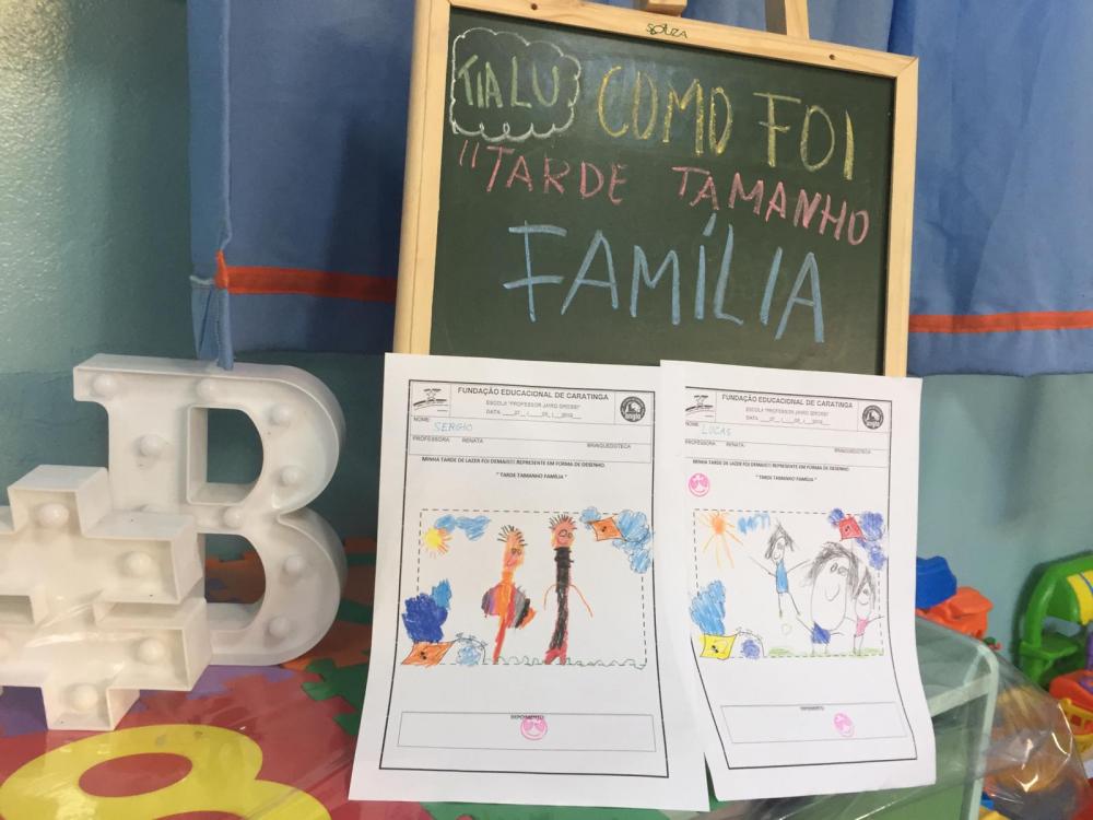 No dia 25 de maio, a Escola “Professor Jairo Grossi” realizou uma “Tarde Tamanho Família”, para comemorar o Dia da Família, celebrado no dia 15 de maio. Uma tarde superanimada e cheia de atividades para os participantes, promovendo integração de crianças, professores e famílias. E, como resultado destes momentos de confraternização e alegria, no dia 29 de maio, as crianças da Educação Infantil, sob orientação da Professora Renata Lopes, retrataram todos os momentos vividos, através de lindos desenhos que foram afixados na brinquedoteca da escola.