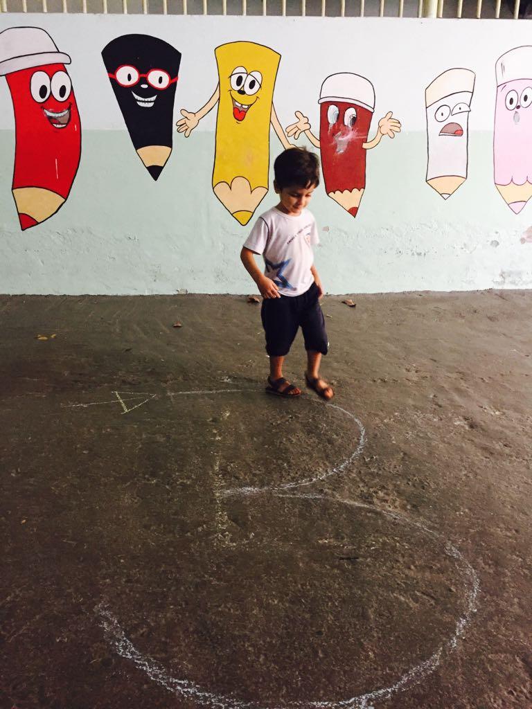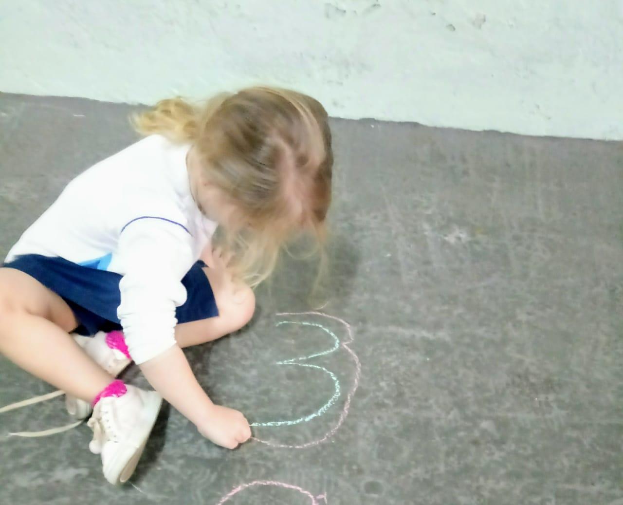 As crianças são aprendizes naturais: curiosas, interessadas, abertas a novas descobertas nas atividades que realizam. Por isso, estimuladas pelas professoras Jaqueline e Renata, descobriram o número “Três” de uma forma lúdica. Através do passar por cima do número com brinquedos, escrita com giz e pincel, trabalhando o movimento pinça e pegada correta.