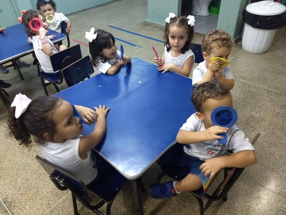 Dando sequência às atividades do Projeto “Pintando o 7”, as crianças do Minimaternal da Educação Infantil, participaram, no dia 15 de maio, de uma divertida experiência, utilizando a “Lupa das Cores” para descobrir as cores que estão presentes no ambiente da sala de aula. A atividade, desenvolvida pela professora Cristianni, teve por objetivo trabalhar as cores primárias, de maneira lúdica e prazerosa, estimulando os diversos canais sensoriais de forma integrada (visão, tato, olfato, audição, paladar).