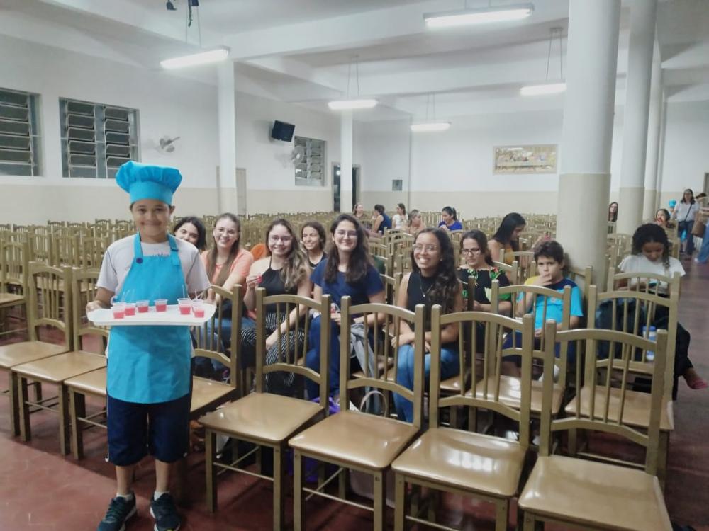 Com o objetivo de apresentar a proposta pedagógica do Tempo Integral oferecido pela escola, aconteceu uma agradável reunião. Ela se tornou ainda melhor e mais saborosa, com o auxílio da professora Jaqueline Garcia e de alguns alunos representantes do seguimento, que serviram, a todos os que estavam presentes, uma deliciosa gelatina.