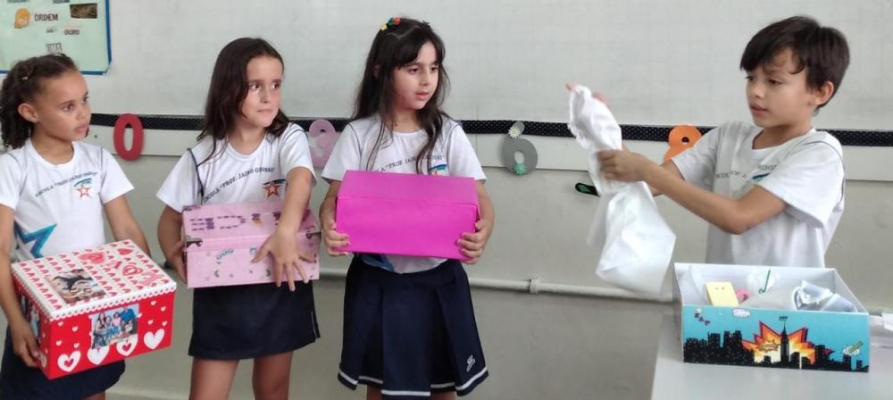 O projeto “Caixa de Memórias” foi realizado com os alunos das turmas do 1º ano. É uma proposta que vem no material pedagógico do Bernoulli Sistema de Ensino, objetivando envolver toda a família na apresentação da história de vida de cada uma das crianças. Muitas fontes foram utilizadas: fotos, documentos, objetos guardados desde o nascimento e, principalmente, os relatos envolventes e emocionantes.