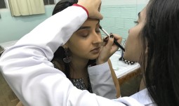 Conciliando teoria e prática, as alunas do 1º p. do Curso de Estética, orientadas pela professora Nayadi Calais, aprenderam uma nova tendência de maquiagem "cut crease", um dos efeitos que mais estão fazendo sucesso atualmente. Tem como objetivo marcar o côncavo, realçando o vinco do olho, deixando aquele traço bem marcado.